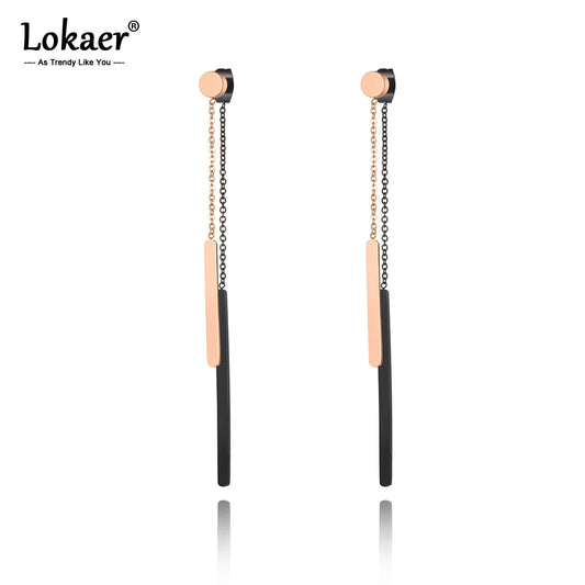 Titanium Stainless Steel Geometry Strips Tassel Earrings Jewelry Gold Plated Dangle Earrings for Women Aretes E19234
