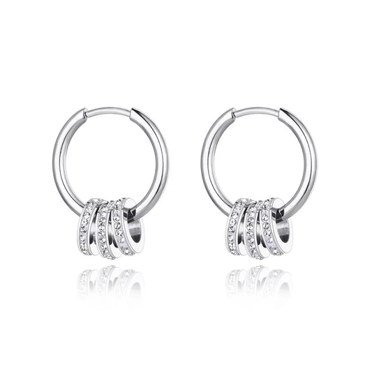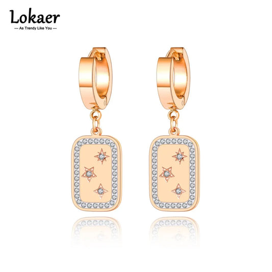 Titanium Stainless Steel Rhinestone Star Earrings Fashion Geometric Rectangle Hoop Earrings Jewelry for Women Girl E22075