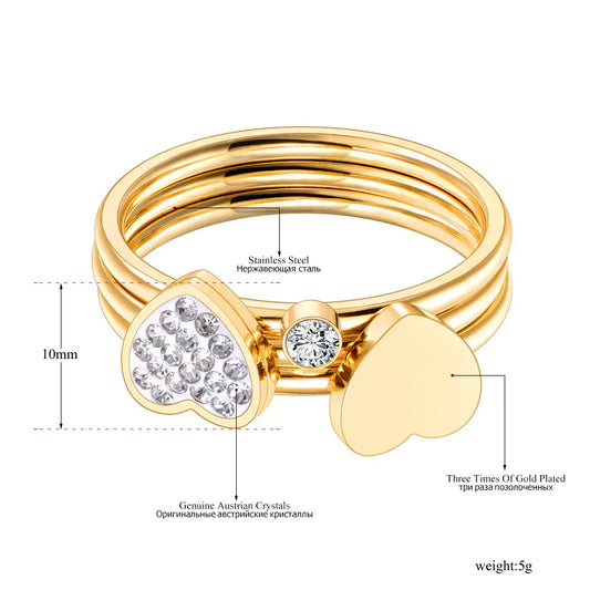 Trendy 3 in 1 Mosaic CZ Crystal Love Heart Rings Jewelry Stainless Steel Wedding Engagement Ring for Women Girls R21032