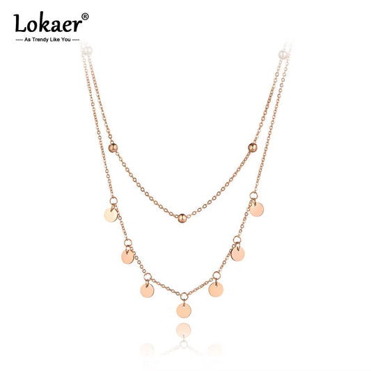 Trendy Bohemia Stainless Steel Double-Layer Charm Chain Choker Necklace Beach Jewelry Pendant Necklace for Women N19127