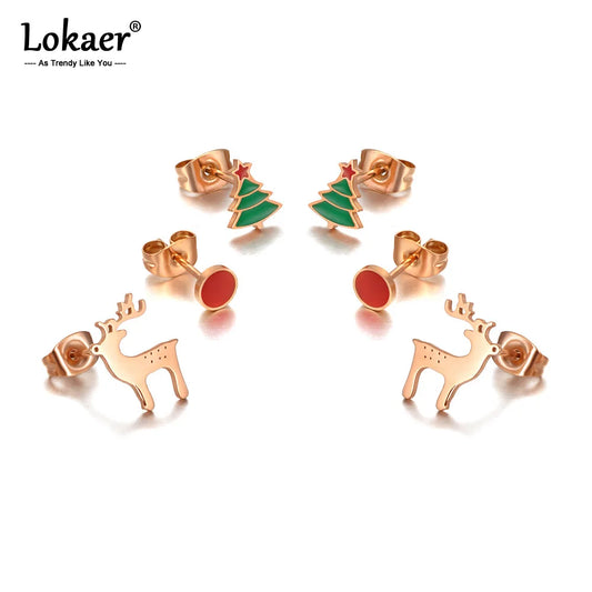 Trendy Titanium Stainless Steel Christmas Tree Reindeer Earrings 3Pair/Set CZ Crystal Earrings for Christmas Gifts E20163