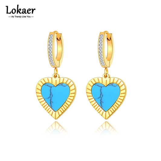 Trendy Titanium Stainless Steel Turquoise Heart Hoop Earring Classic Rhinestone Wedding Earrings Jewelry for Women E22065