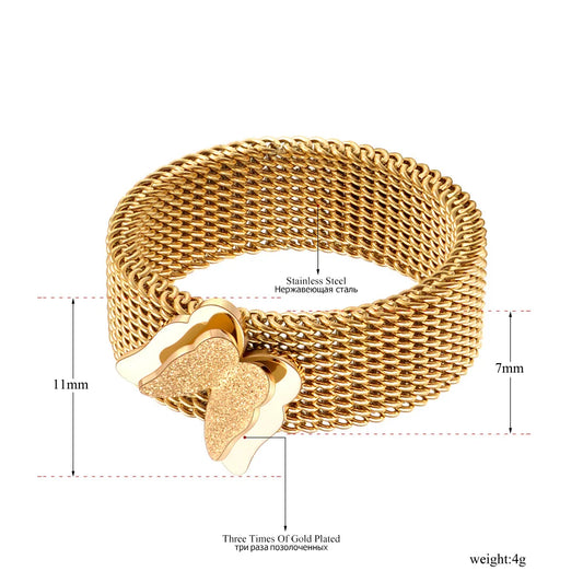 Trendy Titanium Stainless Steel Butterfly Animal Ring Gold Plated Bohemia Party Rings Jewelry for Women Кольца R21009
