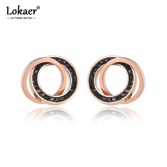 Trendy Stainless Steel Clay Crystal Double Circles Stud Earrings Jewelry Vintage Earrings for Women Girls E19091