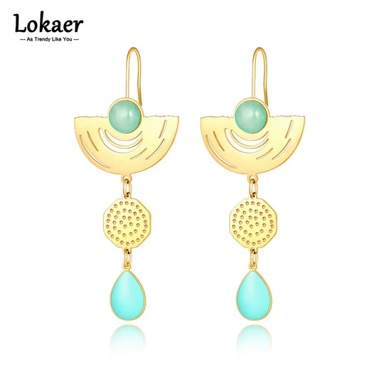 Vintage Stainless Steel Geometry Opals Dangle Earrings 18K Gold Plated Bohemia Party Earrings for Women Girls E22068